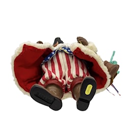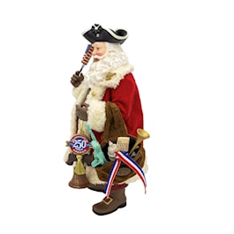 Celebrate the spirit of America with Kurt Adler's 11" Fabriché™ 250th Anniversary of America Musical Santa! This delightful collectible features Santa Claus in a patriotic outfit of red, white, and blue, holding the American flag and standing proudly atop a base adorned with stars and stripes. Crafted with exquisite attention to detail, this musical Santa plays a classic tune that evokes the pride and joy of America’s 250th anniversary. Perfect as a centerpiece for your holiday décor or as a meaningful gift, this unique piece combines festive cheer with patriotic pride.