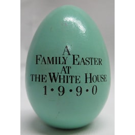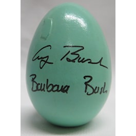 Bush Easter Wooden Egg/ A Family Easter at the White House 1990. Printed signatures of George Bush and Barbara Bush on the back .