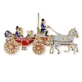 The 2001 Official White House Historical Association Ornament honors the life and administration of Andrew Johnson, 17th President of the US. It features a three dimensional replica of the type of carriage used by President Johnson. He often took carriage rides out in the countryside to relax after a stressful day of politics. “My favorite memory is of the presidential carriage coming back to the White House filled with children."