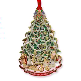 The very popular 2008 Official White House Historical Association Ornament is a beautiful Christmas tree laden with toys under the tree and flags crossed at the top. The 2008 ornament honors the presidency of Benjamin Harrison, the 23rd President of the U.S. 1889-1893. Harrison's election interrupted the administration of Grover Cleveland, the only president to serve 2 non-consecutive terms. Harrison started the tradition of decorating the first Christmas Tree in the White House in 1889. The 2008 ornament was designed in the shape of a tree and is Gold plated. "We shall have an old fashioned Christmas Tree for the grandchildren upstairs, and I shall be their Santa Claus myself." Own a piece of history. Gift boxed.