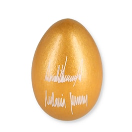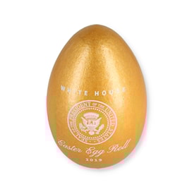 The 2019 Official Trump White House Easter GOLD Egg features the prestigous Seal of the President and year with printed signatures of Donald J. Trump and Melania Trump. The gold egg was inspired by the Vermeil Room in The White House. The official eggs have become a White House collectible. The souvenir eggs are crafted from FSC-certified U.S. hardwood and arrive in a yellow gift box. Made in the USA by Wells Wood Turning and Finishing.