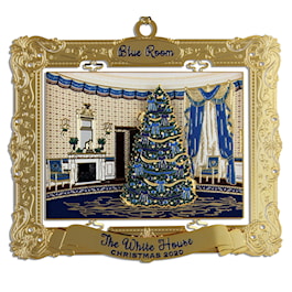 This 2020 Blue Room ornament is the third in a series of ornaments featuring White House State Rooms that graced our presidents' official Christmas cards and gifts. The Red Room and Green Room ornaments were introduced in 2018 and 2019 respectively. Collect them all.