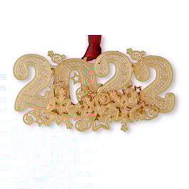 2022 Numerals Beautifully handcrafted ornament made in the USA from solid brass, 24kt Gold finish, with digitally printed color. Packaged in an elegant window showcase.