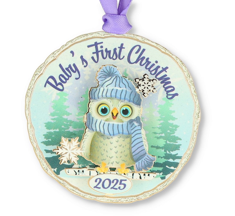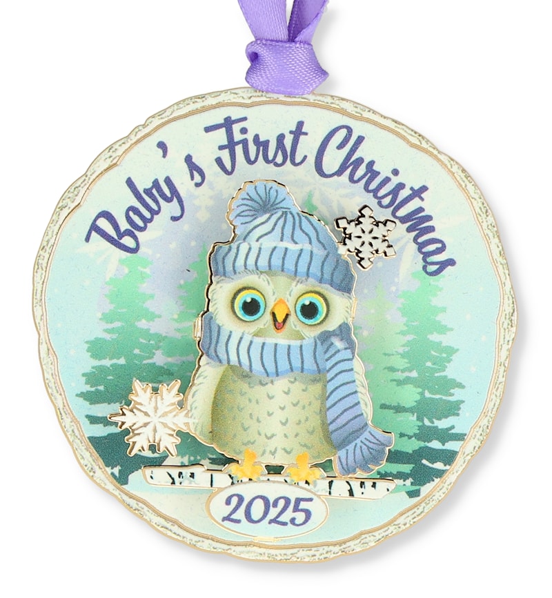 This 2025 ornament is beautifully handcrafted in the USA from solid brass, 24kt gold finish, and with digitally printed color.
