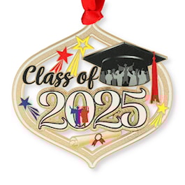 This 2025 graduation ornament is beautifully handcrafted in the USA from solid brass, 24kt gold finish, and with digitally printed color.