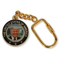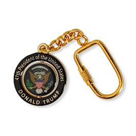 This keychain features the 47th president and the Presidential Seal. The inner circle can be spun around.