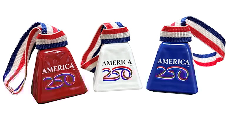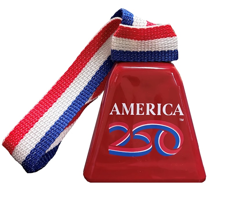 Honor America's 250th Anniversary with Bevin Bells! Bells are the perfect way to celebrate this momentous occasion in the USA and serve as great mementos. Bevin Bells is the ONLY bell manufacturer in the USA. Now you can own a piece of history and let freedom ring with this officially licensed, limited-edition AMERICA 250 Cowbell. These come in a Red, White, or Blue finish, with Red, White, & Blue striped wrist strap.