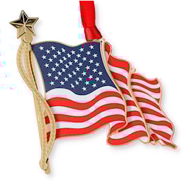 Display your patriotic pride on FLAG Day and all year round with this miniature replica of Old Glory. This beautiful ornament is finished in 24 karat gold and handmade in the USA. It is a perfect ornament by itself or when used to complement other Americana ornaments in your collection! This will make a wonderful gift for the patriotic person in your life - gift it with pride! Comes in a gift box.