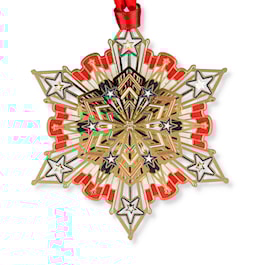 Beautifully handcrafted ornament made from solid brass, 24kt Gold finish, with digitally printed color. Packaged in an elegant window showcase box.