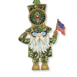 Honor the soldier in your life with this ornament that was beautifully handcrafted in the USA from solid brass, 24kt Gold finish, with digitally printed color. Packaged in an elegant window showcase.