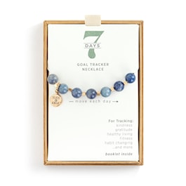 Whether it's living a healthier life, changing a habit or sharing kindness, the 7 Days Tracker Necklace - Indigo and Gold helps you believe, track and achieve your goals, one day at a time.