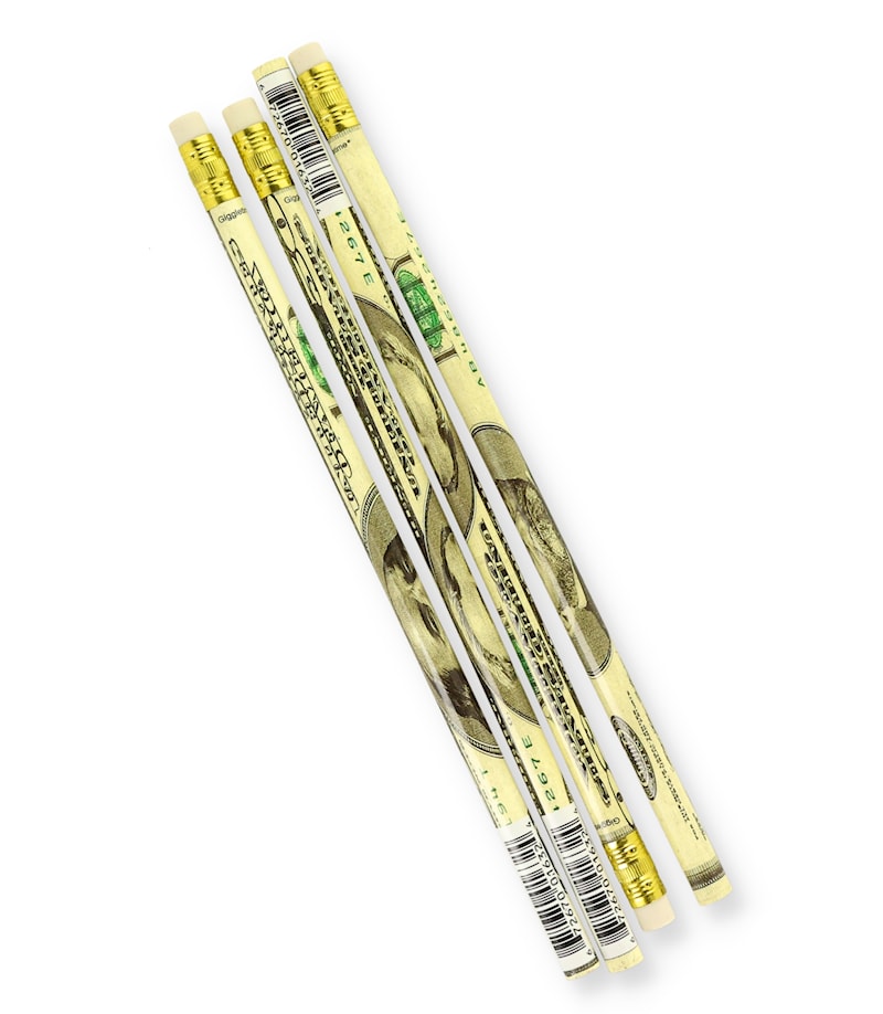 Helpful in school or the home. These pencils feature the picture of Benjamin Franklin as it does on the 100 dollar bill.