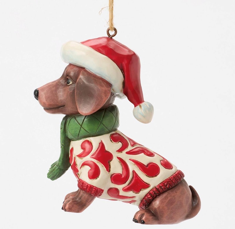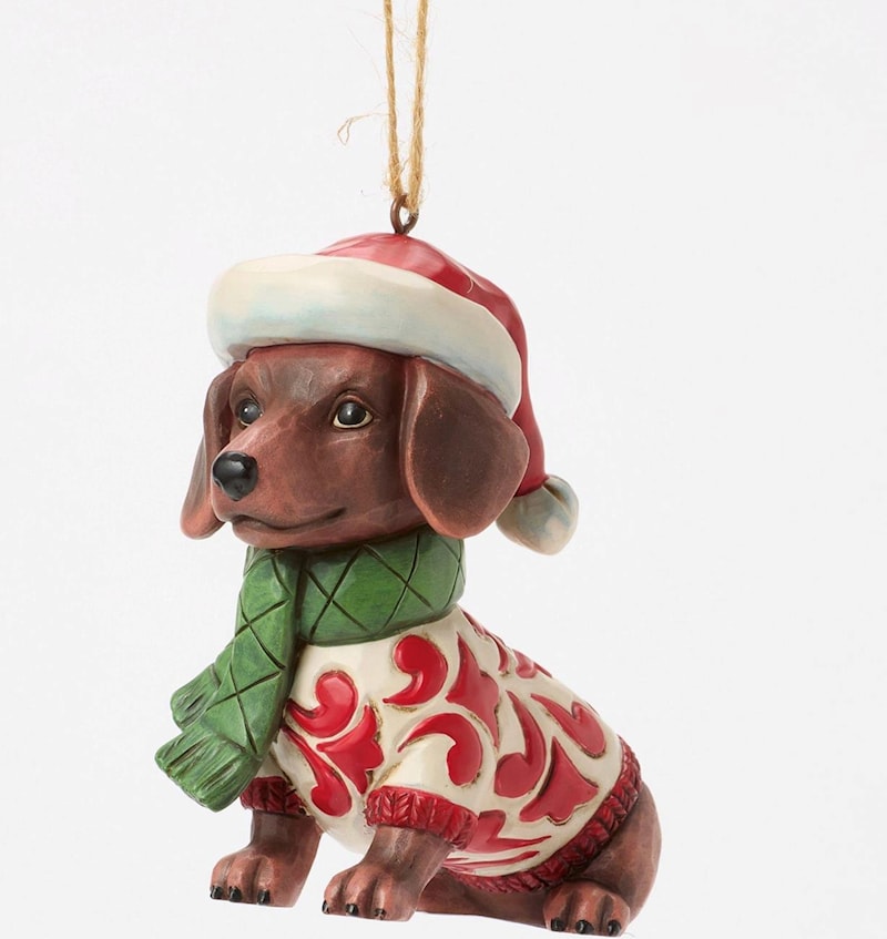 This adorable Jim Shore ornament features a playful Dachshund dressed in a festive scarf, ready to spread holiday cheer. Hanging from your tree, the happy pup wishes you a merry Woofmas with joy that will keep you howling jingle paws all season long!
