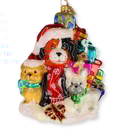 Christmas Dogs with Presents Glass Ornament by the Huras Family Poland