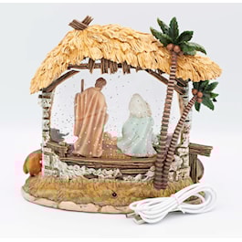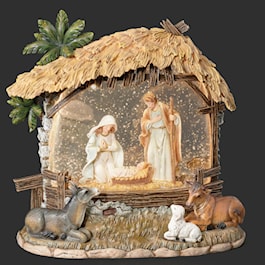 This lighted swirl display captures the Holy Family inside a peaceful stable, surrounded by animals on the outside. Swirling glitter and gentle lighting add warmth and reverence to your holiday display.