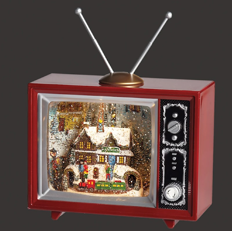 Bring the enchantment of the season into your home with this charming lighted swirl TV, showcasing a festive North Pole Station train scene. Swirling glitter and soft, cozy illumination create a nostalgic and heartwarming holiday accent, adding seasonal warmth and magic to any space.