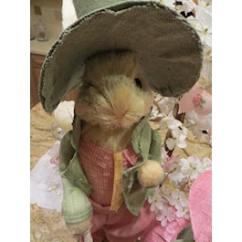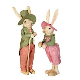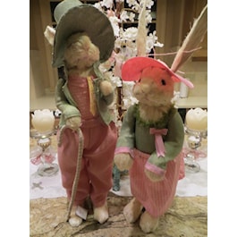 Mr and Mrs. Bunny are out for a stroll in their Easter bonnets of pink and green. They invite you in for Easter dinner or lighten up your home for the Easter season.. 26-30 inches.
