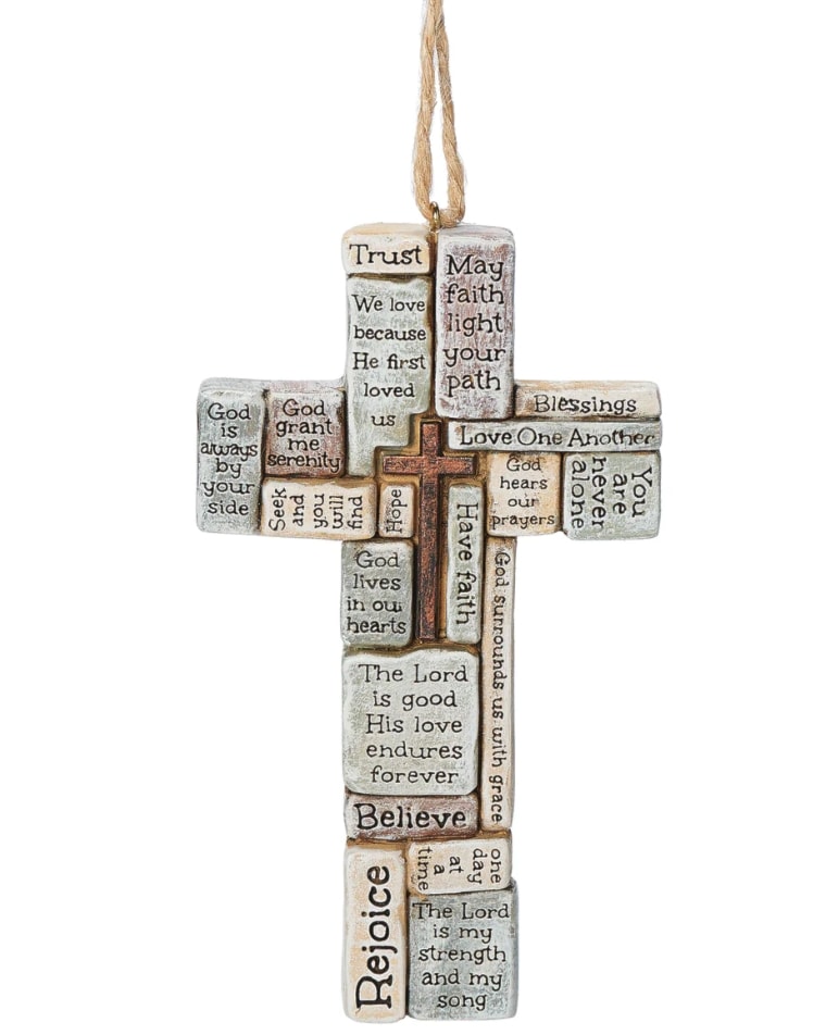 The Crossword Cross Ornament blends faith-filled inspiration with a modern twist. Featuring a collection of uplifting phrases arranged in a crossword-style layout, the words are beautifully integrated into the shape of a traditional cross. With its lightweight design and intricate detail, this ornament is perfect for Christmas trees, wreaths, or as a year-round reminder of spiritual encouragement in any room.