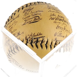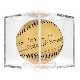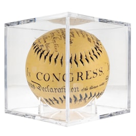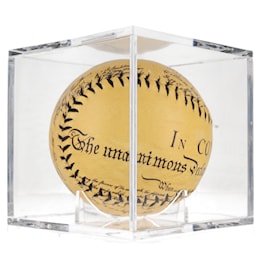 This baseball is embossed with the opening lines of the United States Declaration of Independence on one side and the signatures of the signers on the other.