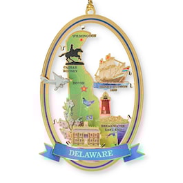 Each of our 50 states have a unique history that we have set out to celebrate with this collection. Each ornament features memorable historical events and fun features that tell a little bit about the state. These ornaments will be released periodically in the order in which the state became part of the United States of America. We hope you'll enjoy these as much as we have enjoyed designing them!
