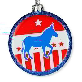 The donkey became associated with the Democratic party in the 19th century, when Andrew Jackson ran for president in 1828 and his opponents called him a jackass (a donkey). Jackson then decided to use the image of this strong beast on his campaign posters! When Thomas Nast used the donkey in his newspaper cartoons, he then linked the donkey to the Democrats forever and so history was made. This ornament is terrific for an election year or a fun ornament for a Patriotic themed tree!