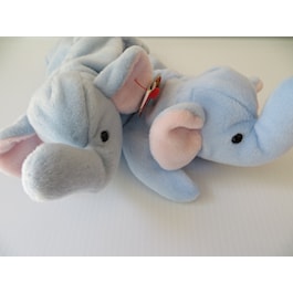 Peanut the Elephant, January 25, 1995. "Peanut the Elephant walks on tip-toes, Quietly sneaking wherever she goes, She'll sneak up on you and a hug you will get. Peanut is a friend you won't soon forget." Collectible. Retired.