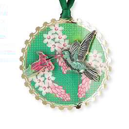 This beautifully handcrafted ornament is made from solid brass, 24kt Gold finish, with digitally printed color. Packaged in an elegant window showcase.