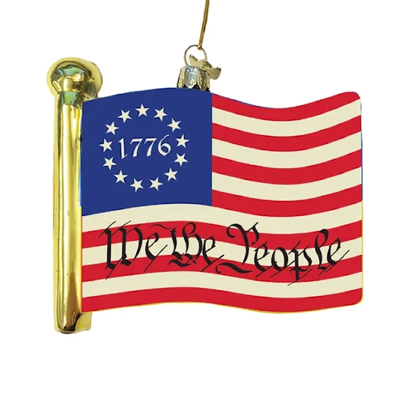 Show your patriotic pride with Kurt Adler's Glass "1776 We The People" American Flag Ornament, a timeless tribute to America's founding ideals. Beautifully crafted in shimmering glass, this ornament features the iconic phrase "We The People" alongside a striking depiction of the American flag and the founding year, 1776. Perfect for holiday décor or year-round display, this elegant piece celebrates the enduring spirit of freedom and independence.