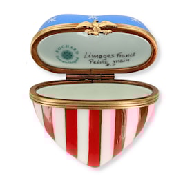 Display it proudly in your home or office, and let its beauty serve as a constant reminder of the values and pride that unite us as Americans. Order your American Flag Heart Limoges Box today and experience the luxury and craftsmanship of this extraordinary piece of art.