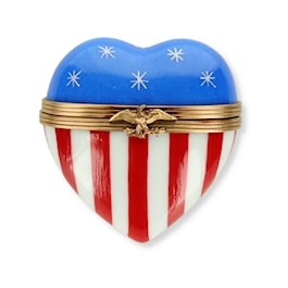 With its timeless elegance and meaningful symbolism, the American Flag Heart Limoges Box makes a remarkable gift for any occasion. Whether you're celebrating a veteran, showing appreciation for a loved one, or simply decorating your space with a touch of patriotic charm, this collectible is sure to evoke emotions and create lasting memories.