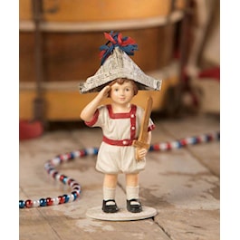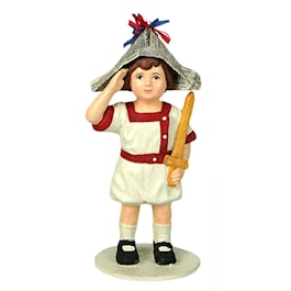 One of the first things we are taught when we enroll in Elementary School is the Pledge of Allegiance. A patriotic expression of allegiance to the American flag and United States of America, it is usually recited each morning as a group on the playground or as students assemble in their classroom. This little boy is dressed as a patriot to the United States with his newspaper tri-corn hat and golden sword in his left hand. The I Pledge Allegiance Boy salutes the flag and stands tall as he readies himself to lead his classmates in reciting the pledge.