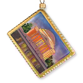 The Jefferson Memorial is a presidential memorial built in Washington, D.C. between 1939 and 1943 under the sponsorship of President Franklin D. Roosevelt. Roosevelt thought that it was a suitable memorial to the Founding Fathers of the United States and to Thomas Jefferson, the principal author of the United States Declaration of Independence and the founder of the Democratic-Republican Party. This Jefferson Memorial ornament comes in a postcard-shaped ornament. Address it to a special friend on the back.