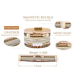 • 7.8" long to fit most people's wrists, the bracelet is made of high-quality leather, and the simple clasp design is lightweight and easy to wear