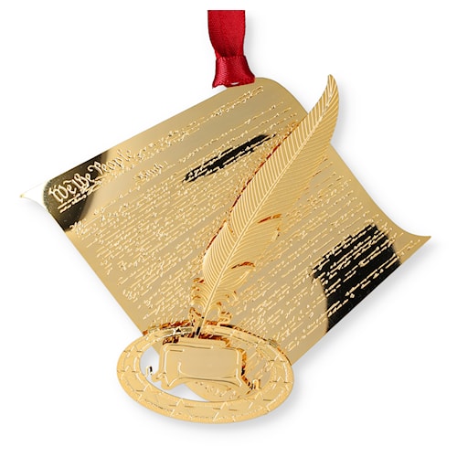 Beautifully handcrafted ornament made in the USA from solid brass, 24kt Gold finish, with digitally printed color. Packaged in an elegant window showcase box.