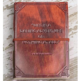 Handmade leather-bound journal with a vintage look and feel. This leather-bound journal embossed with the quote “LIFE IS A DARING ADVENTURE OR NOTHING AT ALL,” by Helen Keller is the perfect way to reflect, create, and capture inspiration wherever you go. Use as a daily planner, personal diary, for daily gratitudes, or journal writing.