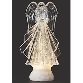This lighted swirl angel holds a heart, radiating love and peace. Glitter swirls gently around her, illuminated by soft light, making it a beautiful and meaningful addition to your holiday decor.