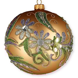 Lily of the Valley is one in a series of flowers selected for this collection made exclusively for White House Holidays. The 5 inch mouth-blown glass ball is hand-painted and ornately decorated with fine crystals and brilliantly colored glitter. The ball ornament is hand-crafted in one of the finest factories in Poland.