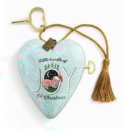 Art Hearts is a top-selling collection of meaningfully crafted creations. Each piece is based on an artisan-made sculpture or painting and comes bearing a message that inspires, connects and brightens the day. The blue and red Child's First Christmas Musical Art Heart is a decorative keepsake that is sure to brighten your space.