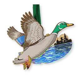 This ornament is for the duck lover. This ornament was beautifully handcrafted in the USA from solid brass, 24kt Gold finish, with digitally printed color. Packaged in an elegant window showcase.