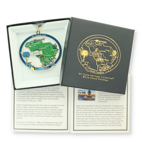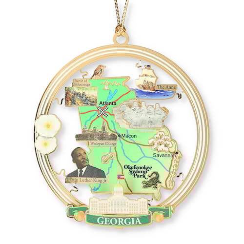 Each of our 50 states have a unique history that we have set out to celebrate with this collection. Each ornament features memorable historical events and fun features that tell a little bit about the state. These ornaments will be released periodically in the order in which the state became part of the United States of America. We hope you'll enjoy these as much as we have enjoyed designing them!