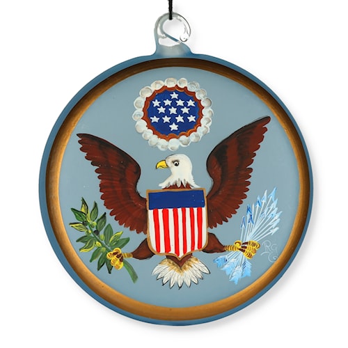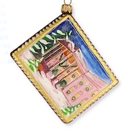 This beautiful ornament of the North Portico of the White House on a glass-blown postcard. You can address the back of the ornament to a friend. This ornament is hand-painted and mouth-blown in Poland.