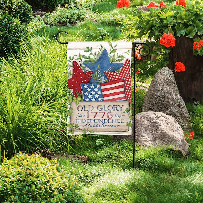 Make your garden space even more personalized with the Susan Winget Old Glory Patriotic Stars Garden Flag. Made from fade-resistant premium materials, this garden flag is where art meets nature. Plus, should nature get a little muddy — it’s machine washable!