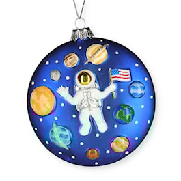Embark on a cosmic adventure with the Glass Astronaut With Planets Ornament, a stellar addition to your space theme or Christmas tree. It is just out of this world!!