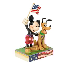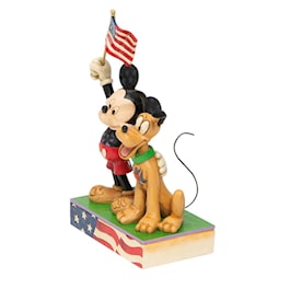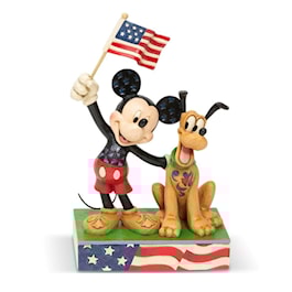 What is more American than a man and his dog? In this case, that man is a mouse, Mickey and he wears a wide smile as he waves the red, white and blue flag proudly. Jim Shore celebrates patriotism with Disney's favorite duo, both born in the USA.