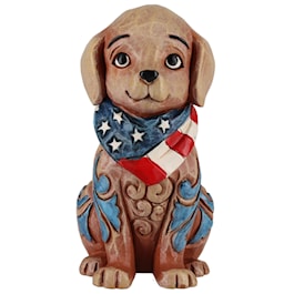 America loves dogs, and this dog loves America. With a flag bandana tied around his neck, this canine belongs to the USA. Jim Shore rosemaling makes this patriotic puppy absolutely fetching.