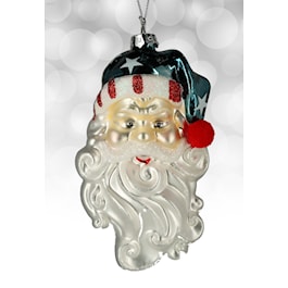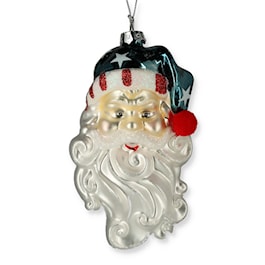 Patriotic Santa Head Glass Ornament