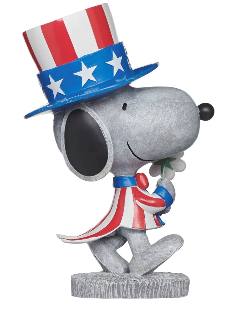 Celebrate patriotic spirit with this Peanuts Patriotic Snoopy Statue. Dressed in red, white, and blue with his signature charm, Snoopy brings a cheerful and nostalgic touch to patriotic decorating. A delightful collectible that combines classic Peanuts character appeal with timeless national pride.