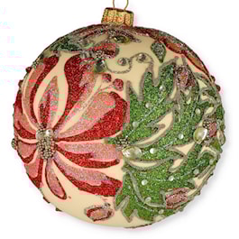 The Peony is one of the special flowers chosen to be included in this collection made exclusively for White House Holidays. The 6 inch mouth-blown glass ball is hand painted and ornately decorated with fine crystals and brilliantly colored glitter. The ball ornament is hand-crafted in one of the finest factories in Poland.