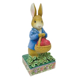 Holding a basket of strawberries, Peter Rabbit smiles from the garden in this charming Jim Shore design. Surrounded by foliage, Peter picks fruit carefully in his iconic blue jacket. Celebrate the beloved story with this pop of playful spirit. A great Easter decoration or a gift any time of the year!