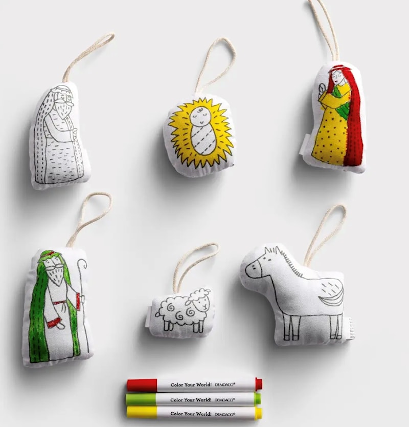 Engage the whole family in Christmas decorating while learning about the true meaning of Christmas with the Plush Nativity Color Me Ornaments! This set of 6 plush ornaments are the perfect way to engage little ones in learning about the Christmas story while also creating lasting memories and new seasonal decor for your family to bring out year after year. The perfect gift for families with little ones this Christmas season!